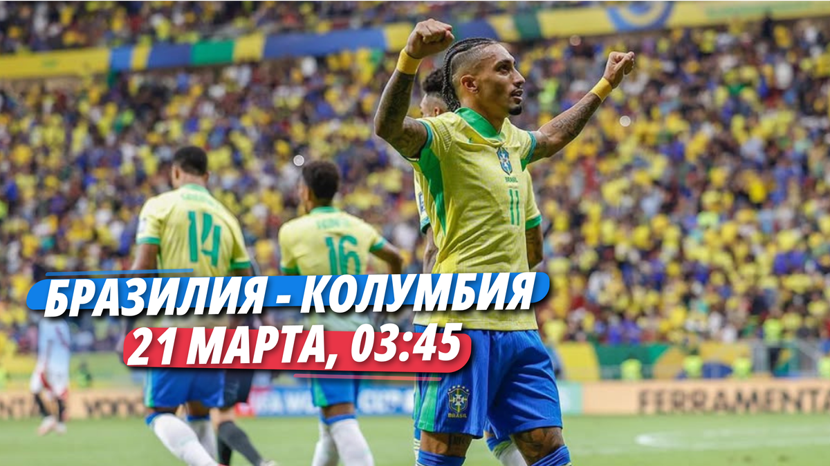 Центральное противостояние мартовского отрезка отборочного цикла чемпионата мира 2026 выпало на город Бразилиа и состоится на Национальном стадионе имени Манэ Гарринчи. Не трудно догадаться: здесь Колумбию примет Бразилия. Встреча стартует 21 марта в 3:45 по московскому времени, а трансляцию можно смотреть в онлайн-кинотеатре Okko. Миллиардный состав сборной Бразилии пока не обеспечил её путёвкой на северо-американский мундиаль. Даже в четвёрку лучших «пентакампеоны» не входят: они занимают 5-ю позицию с 18 очками – это лишь на 1 меньше, чем у Колумбии с Эквадором, но на 7 – чем у лидирующей Аргентины. Впрочем, от идущей 7-й Боливии (занимает переходную позицию) отрыв приличный (5 баллов). «Жёлто-синим» рисковать не хочется Как ни крути, а положение сборной Бразилии обязывает её стремиться к большему, особенно в родных стенах. Осень, несмотря на три победы, вышла противоречивой. Здесь были и ничьи с Венесуэлой и Уругваем (1:1 в обоих случаях). Ещё раньше подопечные Дорвала Жуниора прои