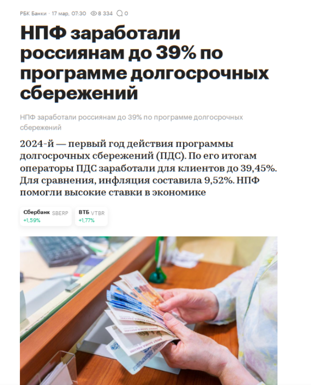 На днях на РБК вышла статья с похожим заголовком. В статье приводится список НПФ который показали очень высокую доходность, начисленную на счета клиентов, по новой программе долгосрочных сбережений стартовавшей в 2024 году. В ТОП НПФ по доходности вошли такие фонды как К счастью, все НПФ отчитываются перед ЦБ за каждый квартал, и в этой отчётности можно увидеть сколько реально заработали фонды и сколько взяли в виде комиссии за управление. На сайтах фондов тоже публикуется отчётность, но там как правило указывается только доходность распределённая на счета клиентов, а эта сумма не всегда равна прибыль минус комиссия. В отчётности перед регулятором у всех НПФ есть два вида портфелей: Для этих портфелей действуют немного разные правила инвестирования, список активов в которые фондам разрешено вкладывать деньги и их максимальные доли. Поэтому и доходности по ним могут иногда сильно отличаться. Так вот средства из программы долгосрочных сбережений относят как раз к пенсионным резервам. То