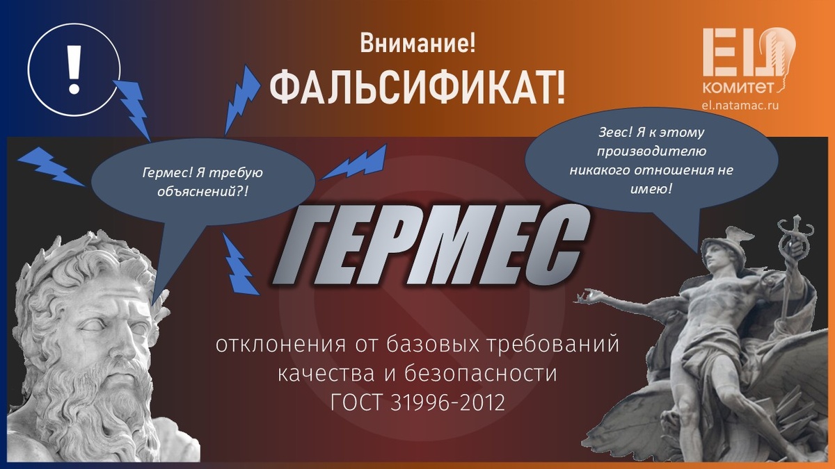 EL-Комитетом НОПСМ получены результаты испытаний образцов кабеля ВВГ-Пнг(А)-LS 3*1,5 и ВВГ-Пнг(А)-LS 3*2,5 ГЕРМЕС™, закупленных на маркетплейсе WILDBERRIES (магазины «SANтехника & Elектрика» и «Электро»). В отобранных образцах выявлены существенные отклонения от всех базовых требований качества и безопасности ГОСТ 31996-2012: В течение 2023-2024 гг. кабельная продукция ГЕРМЕС™ несколько раз отбиралась для испытаний на маркетплейсах Яндекс.Маркет и ОЗОН. Во всех образцах были выявлены отклонения по всем базовым показателям безопасности ГОСТ 31996-2012 (только по показателю «превышение электрического сопротивления ТПЖ» значения достигали 59,2 %). Полученные результаты испытаний, а также фактическое отсутствие сертификатов соответствия на продукцию ГЕРМЕС™ являются прямым свидетельством того, что данная продукция является фальсификатом и опасна при использовании по назначению, а ее изготовитель представляет из себя очередной полуподвальный «завод-призрак», бенефициаров которого уже разыс