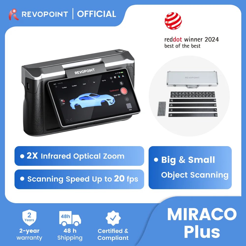 Revopoint MIRACO Plus разработан для широкого спектра задач, справляясь как с простыми объектами, так и с поверхностями сложной геометрии. Модель не содержит веществ высокой опасности и соответствует современным стандартам экологичности и безопасности. Этот 3D-сканер продаётся поштучно и является отличным выбором для тех, кто ищет качественное и надёжное оборудование по разумной стоимости. Интеллектуальная функциональность и технологичность обеспечивают его универсальность в использовании, будь то мелкосерийное производство, научные исследования или творческие проекты.