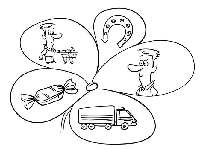 Пятый «лепесток» — поставщики и партнеры. Те, кто не имел дела с крупными компаниями, редко встречаются с процедурами формальной оценки поставщиков. Им это представляется совсем простым вопросом. Покупать надо у того, у кого уже покупал, а если нашел, у кого тот же продукт дешевле и/или лучше, — сообщи об этом своему поставщику и попроси его «соответствовать». Оказывается, все не так просто. У крупных организаций существуют целые системы работы с поставщиками, которые можно обобщить в модель оценки привлекательности поставщиков. Она может включать в себя разные критерии, например юридические, экономические, репутационные и логистические. Количество критериев может варьироваться от одного до нескольких десятков. Все зависит от стратегических и тактических целей самой организации, которая определяет эти критерии. Теоретически самыми важными должны быть цена и качество поставляемых материалов и услуг, сервис, надежность и стабильность поставок. «Сервис, надежность и стабильность» подразу