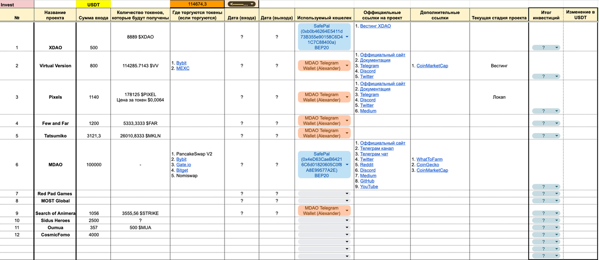 Во-первых, чтобы вы понимали, я всё фиксировал в своей импровизированной таблице (да-да, можно было её подкрутить, но в какой-то момент я просто понял, что подкручивать нечего, потому что процентов 90 из того, что вы тут видите, соскамилось со свистом и треском):