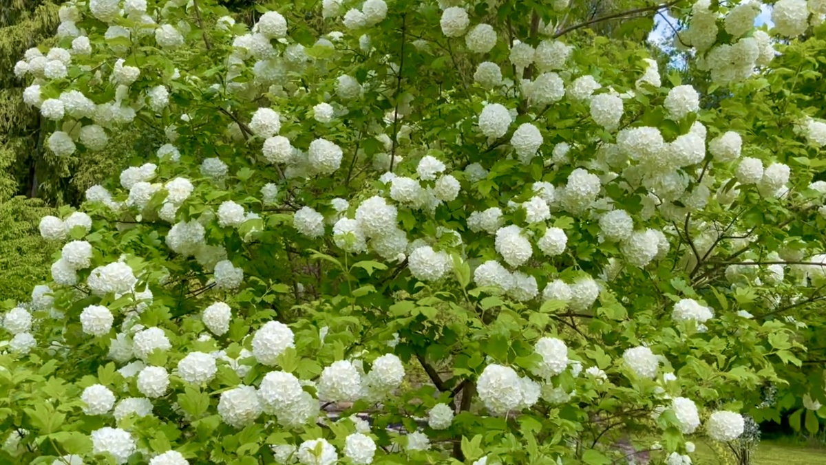 Калина Бульденеж. Снежные шары в июньском саду. Viburnum Boulle-de-neig