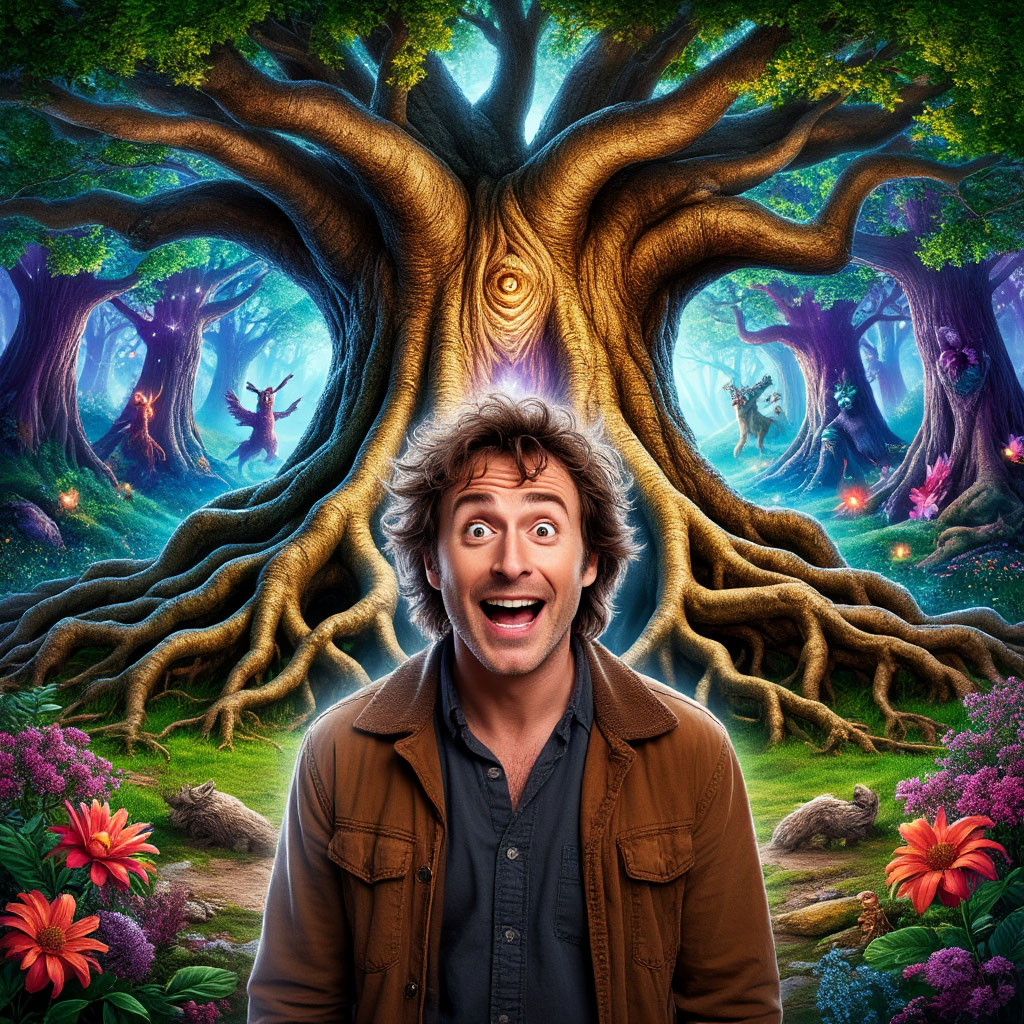 В тихом городке под названием Эльдера, затерянном среди бескрайних лесов, мальчик по имени Алан. Он был особенным ребенком: его мечты всегда уносили его далеко за границы привычного мира. С утреннего света до сумерек он бродил по полям и сквозь деревья, собирая легенды и шепоты природы, как будто искал что-то важное, что могло скрываться в этих звуках. Однажды, гуляя по старой тропе, Алан наткнулся на массивное дерево с раскидистыми ветвями и гладкой, словно мрамор, корой. Его корни, завиваясь, образовывали таинственный портал. В этот момент что-то внутри него откликнулось. Сердце забилось быстрее, и он, преодолев страх, шагнул в темноту. Он оказался в мире, полном магии и чудес — место, где яркие цветы светились, как звезды, где лес оживал, рассказывая древние истории. Здесь не было времени, и старинные существа, такие как Древние Стражи, охраняли равновесие мира. Один из них, величественный Олень с золотыми рогами, увидел Алана и сказал: — Ты пришел в священный лес, но для чего? Ты и