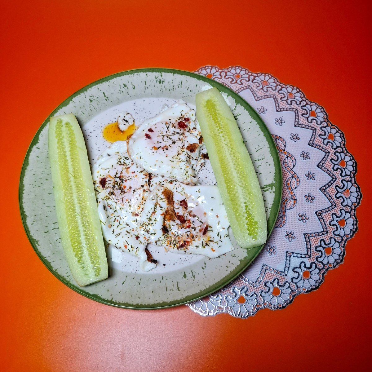 Вчера, дорогие читатели, я приболела, весь день проспала, и всю ночь тоже проспала. Снились мне разные ужасы... Так что пишу отчет о своем питании и впечатлениях день в день. Сегодня я проснулась в 4 утра, села работать, и, между делом, позавтракала. Съела яичницу из трех яиц, которая опять, как видите, прилипла к моей непредсказуемой сковородке. И огурец. Это вышло на 200 калорий. Для новых читателей сообщаю, что живу я в Самаре, и рассказываю о еде, которая меня окружает. О том, что я ем, планирую съесть или не планирую по каким-либо причинам. Это основная тема блога. Да - это все, что я хочу поведать миру. Готовить при этом я не умею и не люблю. Фото своей ежедневной еды я делаю перед тем как ее съесть (то есть на иллюстрациях не натюрморты и не образцы сервировки - это моя реальная еда в разном фоновом оформлении) Иногда я пишу еще о чем-то, на предмет "хочется поболтать". Сейчас сбрасываю вес на диете, придерживаясь нормы 900 калорий в день. Сидеть на ней планирую 3 месяца. Посты