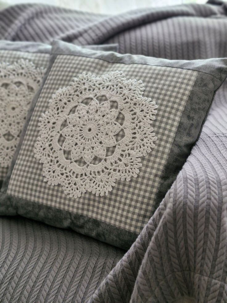 Диванные подушки украшенные вышивкой и мотивами связанными крючком - это такое нежное очарование, что сложно отвести глаза!