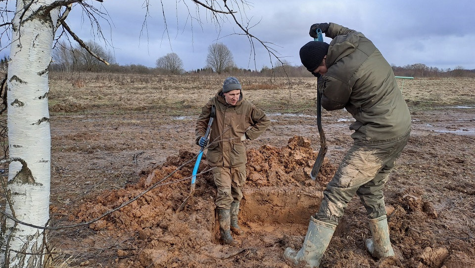 Останки еще одного красноармейца подняли поисковики отряда "Витязь" в Зубцовском округе Тверской области. "Он лежал, аккурат, под одиноко стоящей березкой в том месте, где когда-то было поле. Рядом проложили дорогу, и участок рядом с обочиной выровняли, но дерево не тронули. ТМ сработал на круглый металлический котелок, лежавший рядом с головой", - рассказали волонтеры в группе отряда в ВК. Вместе с останками поисковики нашли вещи бойца: фляжку из голубого стекла, голубую кружечку и "боевой обвес" – ремень, подсумки. Медальона или гильзы с запиской найти не удалось: солдат остался неизвестным.©ТИА фото: группа отряда "Витязь" в ВК
