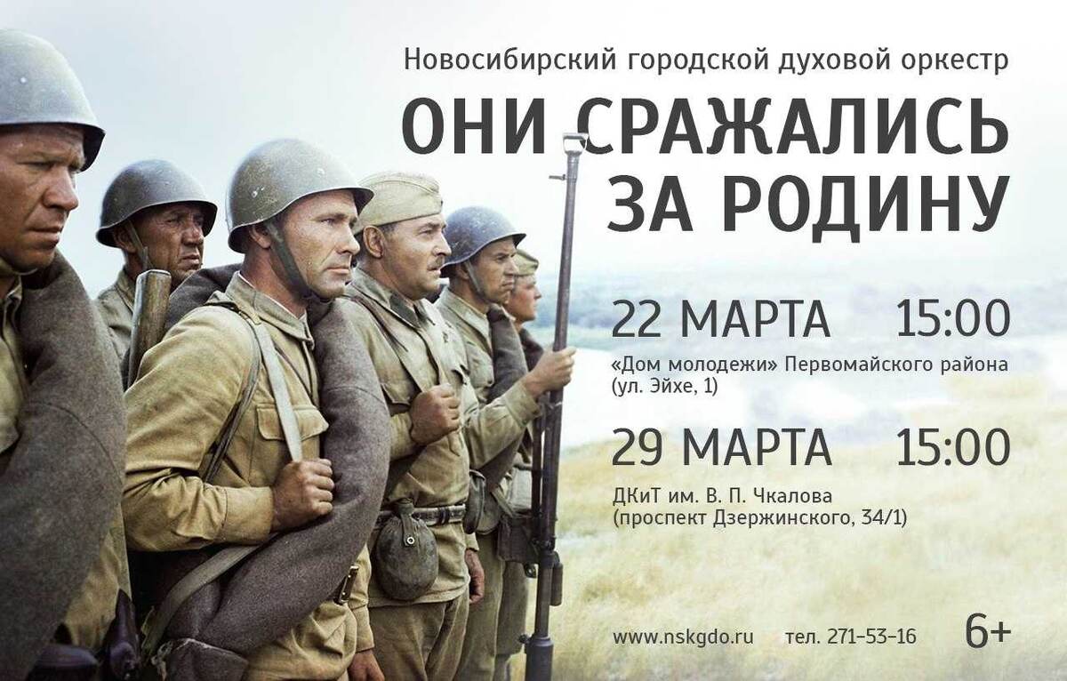 Новосибирский городской духовой оркестр подготовил концерт в дань памяти великим режиссерам, поэтам, артистам театра и кино, певцам и композиторам, которые в годы Великой Отечественной войны приближал День Победы. Их вклад в Победу невозможно переоценить, среди них: Юрий Никулин, Алексей Смирнов, Анатолий Папанов, Элина Быстрицкая, Владимир Этуш и многие другие известные артисты.