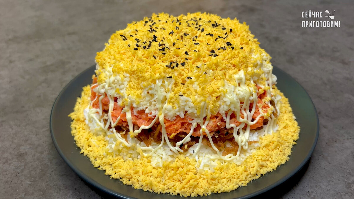 Пробовали ли вы когда - нибудь французский салат?! Он яркий, красивый, простой в приготовлении, недорогой, быстро готовится. Да и к ужину приготовить такую вкусняшку можно. Почему бы не устроить себе праздник в обычные серые будни. Как готовить: Плавленые сырки натираем на терке, выкладываем первым слоем и делаем сеточку из майонеза. Отделяем желтки от белков. Белки натираем на мелкой терке и выкладываем вторым слоем. И делаем сеточку из майонеза. Яблоко очищаем от кожуры. Натираем его на терке и выкладываем третьим слоем. Вареную морковь натираем на терке, добавляем 3 зубчика чеснока, майонез и перемешиваем. Выкладываем четвертым слоем на яблоко. На мелкой терке натираем желтки и выкладываем на морковь. Сверху посыпаем семенами черного кунжута. Давно заметила, что на праздничном столе на него «налегают» женщины, под бокальчик сухого вина, отличная закуска. Для праздничного стола, это то что надо. Ингредиенты: Приятного аппетита! 👌 Как вам такой рецепт? Жду Вас в комментариях! Подпис