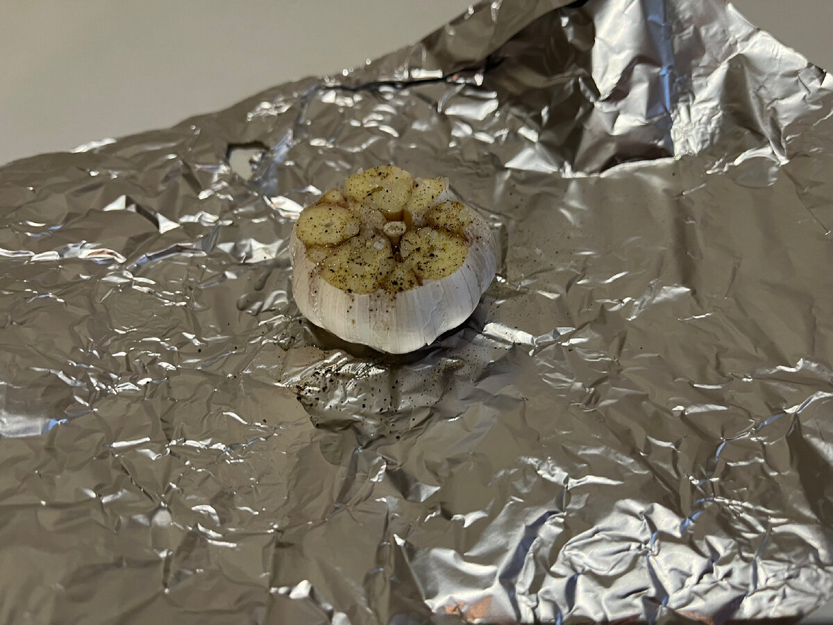 Головку чеснока слегка полейте растительным маслом, посолите, поперчите, заверните в фольгу и уберите в духовку при 180 градусах на 25-30 минут С мягком сливочном масле добавьте укроп, соль и выдавите запеченный чеснок Все тщательно разомните вилкой до получения однородной массы и смажьте ей разрезанный вдоль багет Выпекайте при 190 градусах около 15 минут. Ваша закуска готова!