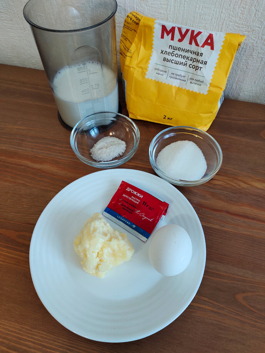 Молоко 300 мл (можно использовать так же кефир,воду) Сахар 2 ст.л. Соль 1 ч.л. Дрожжи 1 ч.л. с горкой Яйцо 1 шт. Сливочное масло 60 гр. Мука 400- 500 гр. В теплое молоко (не горячее) добавляем сахар, соль и дрожжи, все тщательно перемешиваем венчиком. Добавляем яйцо и мягкое сливочное масло. Перемешиваем. Высыпаем частями просеянную муку, замешиваем тесто сначала венчиком, потом когда оно становится гуще руками. Тесто смазываем сверху растительным маслом, накрываем плёнкой и убираем в тихое место примерно на 1.5 часа (советую поставить тесто в духовку, предварительно прогрев ее буквально 2-3 минуты, тогда там будет тепло и тихо) Когда тесто увеличилось в размере в 2 раза, опускаем его руками и снова оставляем его подходить. Когда тесто поднимется второй раз, можно готовить из него булочки, пирожки или хлеб.