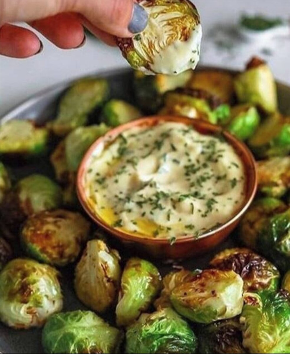 ✅КБЖУ 107.47/4.59/7.62/7.1 ⠀Ингредиенты: ▫️450 гр брюссельской капусты ▫️1-2 ст.л. оливкового масла ▫️Соль и перец по вкусу ⠀ Для соуса: ▫️60 мл сметаны или йогурта ▫️2 ст.л. оливкового масла ▫️1,5 ст.л. дижонской горчицы ▫️1 ч.л. измельченного чеснока ▫️Соль и перец по вкусу ▫️1/2 ч.л. свежей рубленой или сушеной петрушки ⠀ Приготовление: ▫️Разогрейте духовку до 200°С ▫️Смешайте брюссельскую капусту с оливковым маслом, солью и перцем ▫️Разложите их на противне в один слой и выпекайте в течение 17-19 минут, перевернув их через 10 минут ▫️Для соуса взбейте все ингредиенты в блендере ▫️Подавайте капусту с соусом