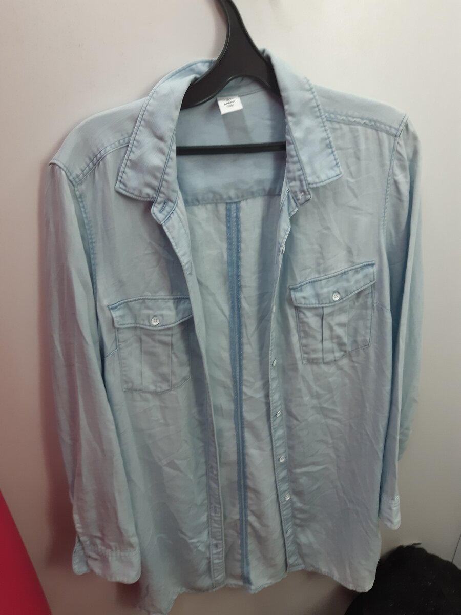 Классная, действительно классная рубашка из лиоцелла, светло-голубой цвет, меленькие пуговички и карманы на груди, и самое главное - льнущая, прохладная в жару, ткань. Подкачала длина, еще не платье, но уже не рубашка. Цена 156р. Кофточка от Warehouse из хлопка и вискозы, рукава и спинка украшены кружевом с интересным рисунком, цвет не белый, а скорее слоновой кости. Очень удобный, неглубокий вырез. 99р. Ярко оранжевая, цвета взбодренной морковки тонковка от Marc OPolo из хлопка с кучей брендированный деталей. 72 р. #секондхенд