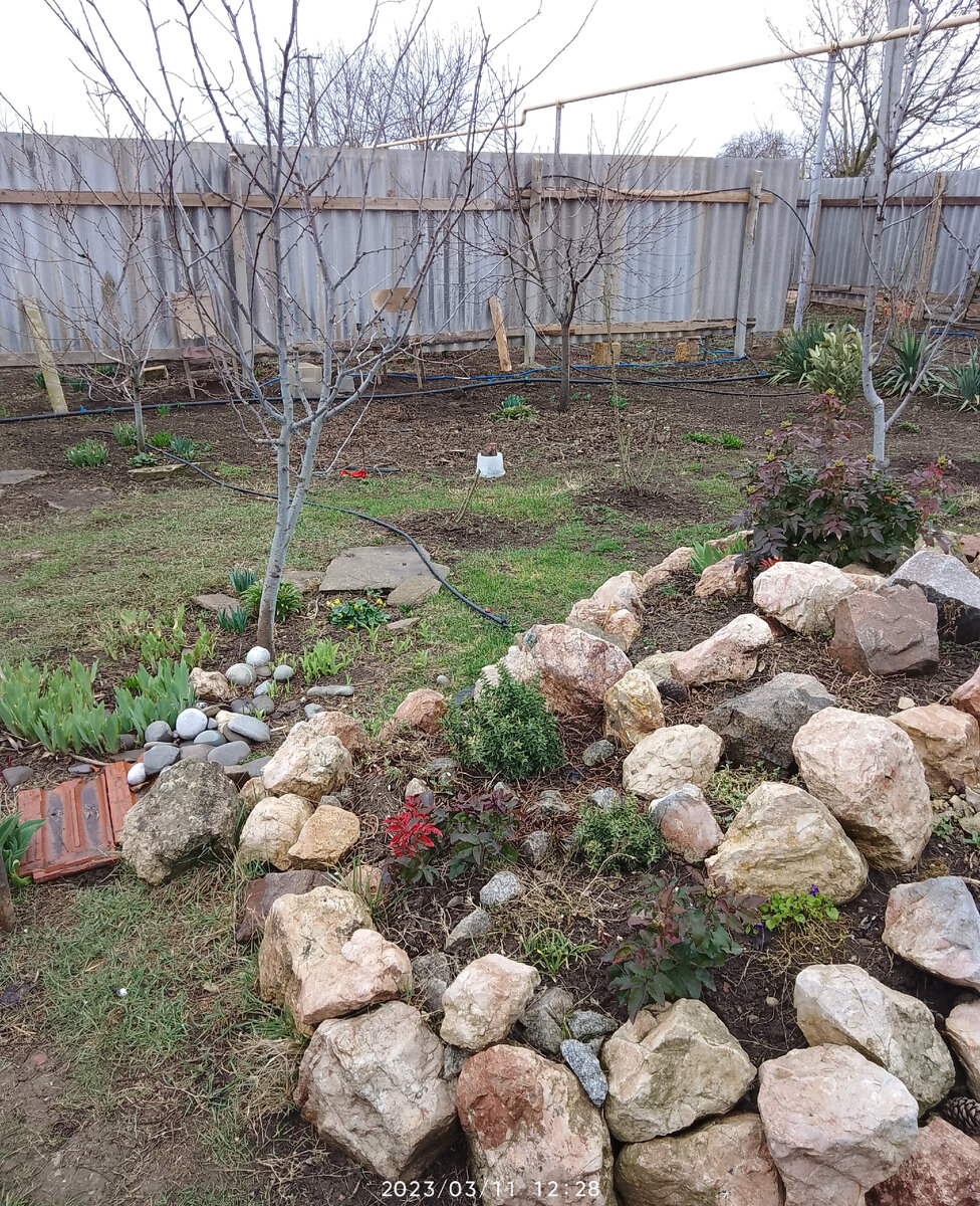 НЕчего особо сейчас в саду делать, только гулять да почки разглядывать. Этим и занимаюсь. Занятие это увлекательное, каждый день что то новое. То подросло, это увеличилось, там что то из под земли появилось. Вот черевишня. Случайно так получилось, что сделала кадр с того же ракурса, что и в 2021г. Когда мы её покупали, то я ещё не знала, что многие черевишни самобесплодны, иначе взяла бы сразу пару. Хорошо, что недалеко стоит черешня, видимо она и опыляет эту вишню неизвестного сорта. Продали нам её просто как черевишню и всё. Два разных вида нарциссов. Один из бутонов, который ближе всего, надкусил Бойка. Вкус ему не понравился. Зато очень понравились тараканы солдатики. Те, что остались ещё в саду после кур, под камнями спрятавшись. Вот чеснок. Третий сезон пойдёт как он тут сам себе растёт. Сначала то мы поддавшись чесночному ажиотажу - его тут все садили пачками - тоже зачем то насадили целую поляну. Зачем нам столько чеснока? Спросила я соседей. Продадите, говорят соседи, тут всё