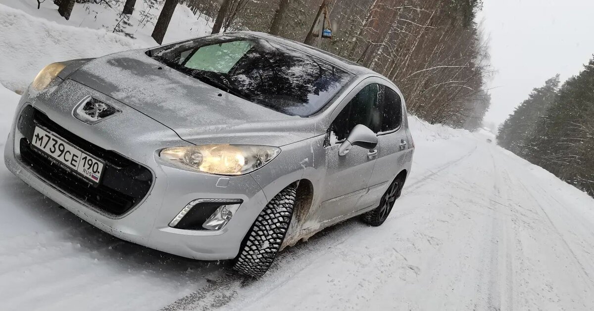 Как я и догадывался, в снежной каше едет как джип :) легкая Пежо 308 уверенно выскакивает из накатанной колеи. По асфальту еду 90-100 км/ч, по укатанной снежной дороге мой порог безопасности 80 км/ч. Шины из-за широких «джиперских» ламелей шумят чуть сильнее от обычных, но для разго