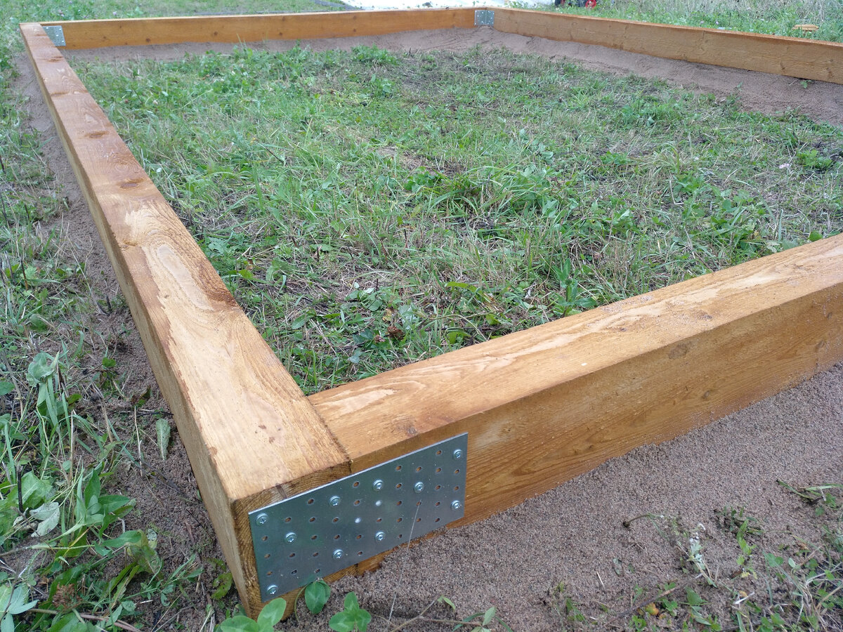 Теплицу мы приобрели давно, первое время она служила мне мастерской, когда на участке кроме бытовки ничего больше не было, а нужно было где-то заниматься сваркой. Окончательное местоположение ещё не было определено, и я просто поставил её на грунт, немного подсыпав песочку под брус.