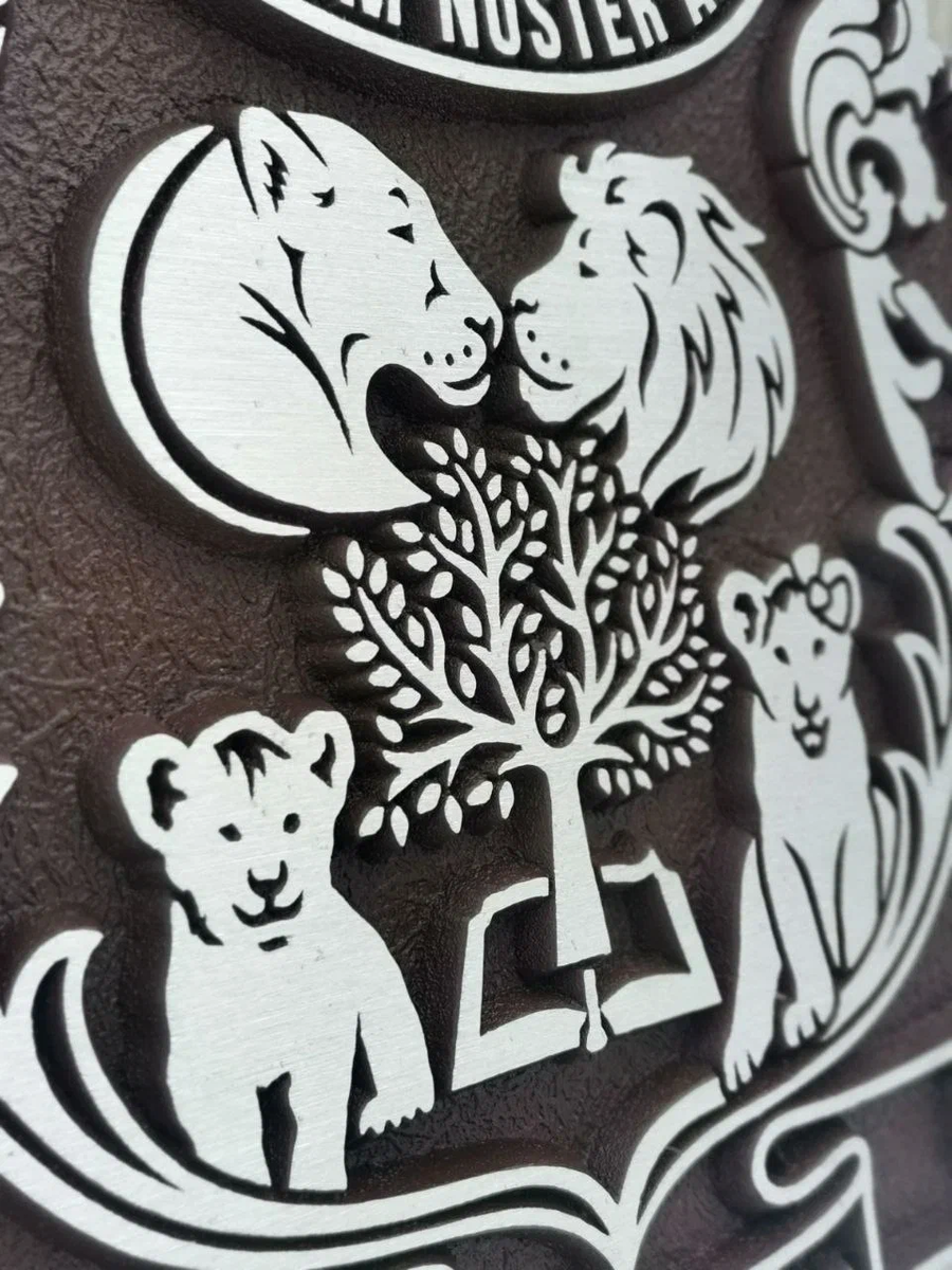 Создавая семейный герб, интересно выбирать из великого множества символов именно те, что подходят именно вам. Сегодня мы покажем одну из наших работ, которая отражает дух большой и дружной семьи. Люди считают львов царем зверей за его силу, мощь, агрессивность и прочие качества, присущие хищнику. В Древнем Египте это гордое животное было символом божественной и царской власти. У ассирийцев и греков, лев — обязательный спутник богинь. Этот герб создавался с нуля, хозяин герба – человек творческий – сам лично рисовал от руки эскиз будущего изделия. Процесс создания герба занял более месяца, но результат того стоил! “Маскулинная” энергия, присущая хищникам, не нашла своего выражения на этом семейном гербе. От него веет уютной атмосферой семейственности и любви. Объединяющим элементом композиции служит Древо жизни, или родовое дерево. Символ книги отражает то, какой большой ценностью для семьи Бушмановой-Глушко являются знания (все члены семьи от мала до велика – очень интеллигентные и об