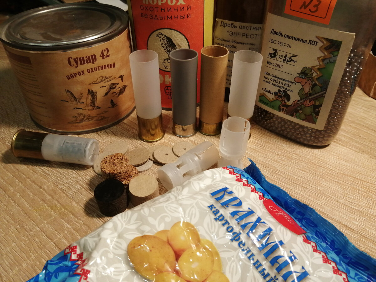 Охотники издавна пытались улучшить бой гладкоствольных ружей на дальние дистанции. Одним из вариантов снаряжения патронов для достижения качественной осыпи на дальней дистанции является и использование буферной смеси в виде крахмала. Отличия при выстреле тут заключены в следующем, в момент нарастания давления пороховых газов в патроннике, снаряд удерживается на месте силой инерции, но при этом он стремится к уплотнению, дробь имеет шарообразную форму и свободное место между ними есть, именно туда и вдавливаются отдельные дробины. Свинец - металл мягкий, однообразные дробины деформируются и принимают отличную от шарообразной форму. После выхода из канала ствола, такие деформированные дробины отходят на край снопа, образуя периферию и ухудшая саму картину осыпи. Соответственно, чем больше деформированных дробин тем шире сама осыпь и тем больше в ней "окон" и разрывов. Для того чтобы минимизировать деформацию и используется буферная смесь - крахмал. Он заполняет пустоты между дробинами,