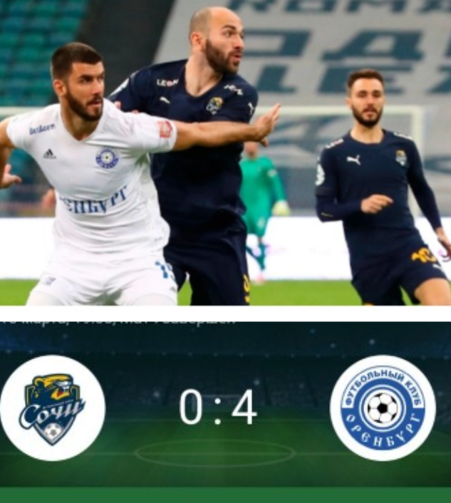 Футбольный клуб Сочи проиграл на домашнем стадионе гостям из Оренбурга