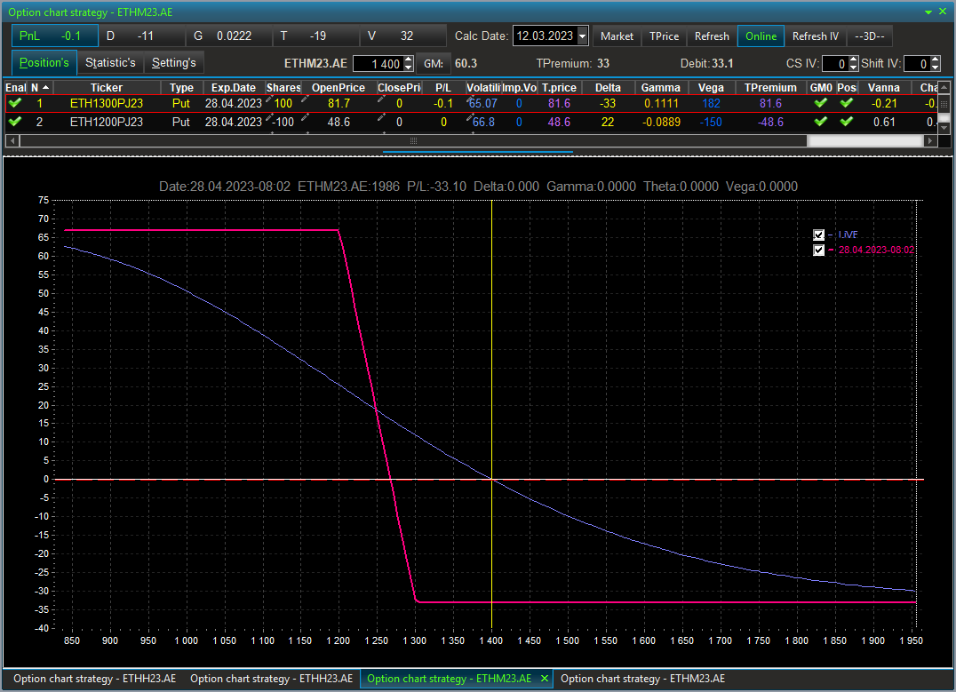 В первой части статьи мы с вами в ожидании «бадабума» сделали ставку на падение ЕТН и собрали под наше вероятностное предположение парочку опционных конструкций с разной продолжительностью жизни. Все уже подуспокоились, и даже наше все - Илон Маск пообещал что-то там выкупить, потом снова продать, но уже дороже, а потом снова выкупить. Но мы с маниакальным упорством будем педалировать/виталировать нашу тему. Делать ставку на падение эфира. И если уж мы встали на «скользкую дорожку» разносерийности опционной - отдельной, до давайте что-нибудь соорудим из опционов апрельских. Не первоапрельских, а экспирирующихся 28/04/23. Встречайте: Медвежий пут спред. Это же какое-то сумасшествие, вскрикнут некоторые из вас. А вот и нет. Вспомните нашу долгоиграющую сделку по DOGE. Мы «тащим» ее уже месяца два, однако - как мы широко зашли. Наша «шапочка» прибыли распростерла свои края от 42 до 126 USDT за фьючерс индекса DOGE. Идите так на линейке встаньте… И вообще, второе, за что я люблю опционы –