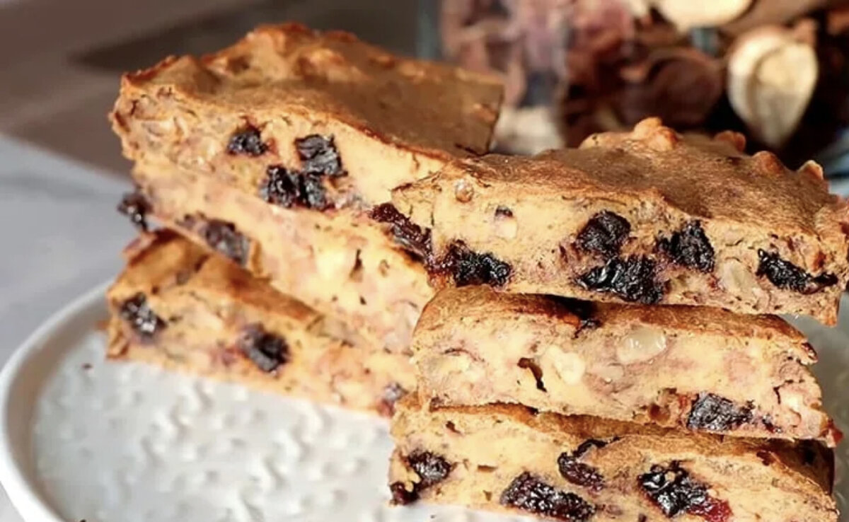 Банановый десерт с орехами и сухофруктами