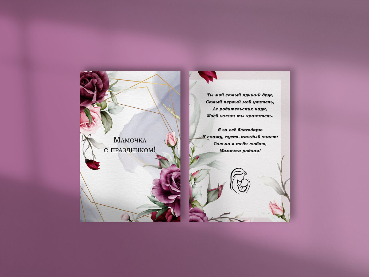 Порадуйте маму с её праздником и подарите нежную и красивую открытку, которая будет многие годы напоминать о вашей любви и заботе. Нежный дизайн и тёплые слова на открытке превратятся в мамину улыбку. Эту и другие наши работы можно заказать на сайте: https://trt74.ru/catalog/otkrytka Обложка и разворот Картинка для соц. сетей Поздравление на День матери в стихах: Ты мой самый лучший друг,