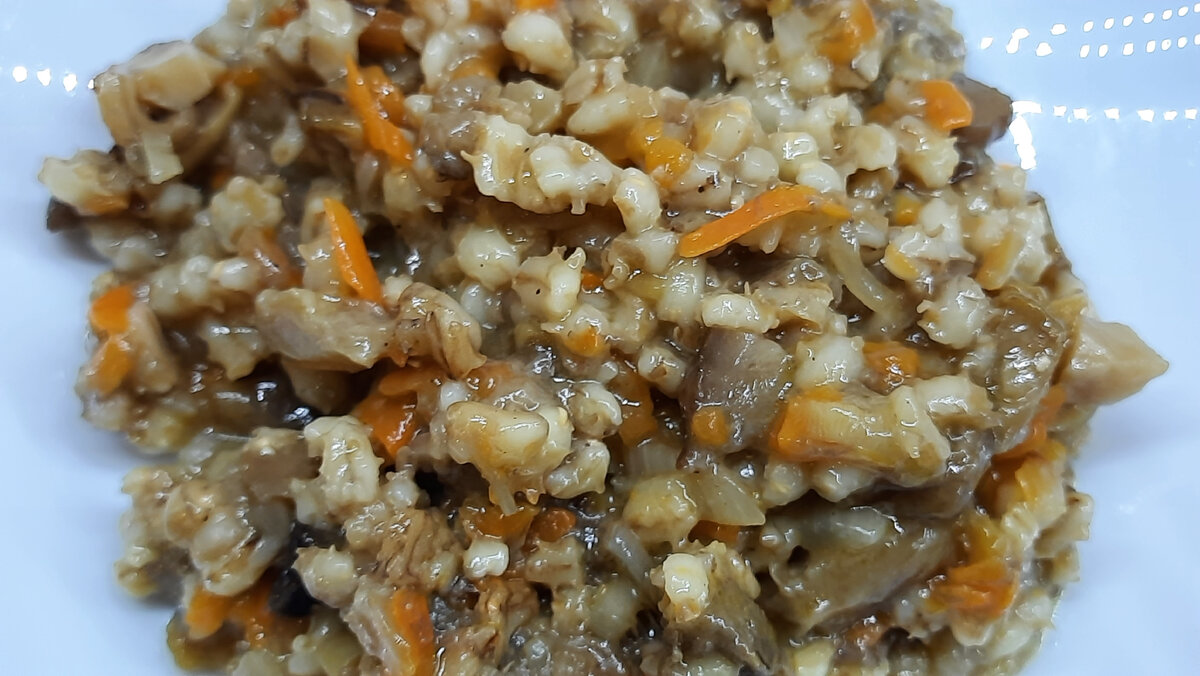 Летом наша семья любит собирать грибы. Сушим их на зиму, и замораживаем уже отваренные. Зимой варим супчики, делаем подливку, и жарим с картошечкой! Вкуснота необыкновенная! А в этот год открыла для себя рецепт жареных грибов с перловкой. Поначалу отнеслась с настороженностью к этому рецепту, но теперь смело могу рекомендовать его к приготовлению. Как всегда быстро и вкусно, да и думаю полезнее чем с картошкой. Итак начинаем! Ставим в кастрюльку отваривать перловку. Я взяла из пакетиков, такая намного быстрее вариться, да и промывать ее не надо. Солим по вкусу, и отвариваем до готовности. Натираем на терке морковь, режем репчатый лук, добавляем масло ( можно сливочное, с ним вкуснее) И обжариваем до готовности . Достаем пакетик грибов из морозилки, размораживаем И добавляем к моркови и луку. Тушим минут 5. Солим, перчим, и добавляем приправы по вкусу. Соединяем грибы и перловку. Хорошо перемешиваем, даем кипеть пару минут. Всё! Наше блюдо готово! Жалко фотография не может передать э