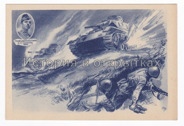 Перед вами первая публикация из серии «История в открытках». В своих постах я буду на основании старых почтовых открыток знакомить с интересными историческими фактами, событиями, личностями и достопримечательностями. Все публикуемые на канале открытки будут только из моей личной коллекции. И первая открытка, с историей о которой я хочу рассказать, перед вами. Лицевая сторона открытки. На открытке изображен эпизод Великой Отечественной войны с уничтожением танков вермахта бронебойщиками. Посвящена данная открытка Герою Советского Союза, на тот момент капитану РККА Даниилу Игнатьевичу Шамуре. Открытка издана в октябре 1942 году, и скорее всего на ней запечатлен эпизод боя у совхоза «Правда» Донецкой области Украины 31 января 1942 года, где Даниил Игнатьевич будучи командир роты ПТР 970-го стрелкового полка отразил контратаку танков противника, лично подбив два из них. В этом бою Даниил Игнатьевич был тяжело ранен. Оборотная сторона открытки. Указом Президиума Верховного Совета СССР от 5