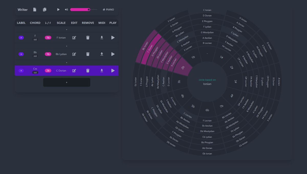 Mindful Harmony - это бесплатное веб-приложение для создания композиций, от компании Twiddle Coding. Основываясь на кварто-квинтовом круге, приложение старается помочь музыкантам подобрать нужные эмоции для их песен. Исходя из своего названия (Mindful Harmony). Инструмент помогает помнить о гармонической составляющей при создании музыки. Он концентрирует ваше внимание в рамках кварто-квинтового-круга, предлагая его в качестве основы для старта, что позволяет быстрее достичь нужных эмоций в аккордовых последовательностях, с которыми вам, скорее всего, захочется в дальнейшем поработать. Можно выделить несколько основных функций, которым служит приложение: Производить более обдуманные и целенаправленные модуляции. Быстрый поиск и подбор нужных аккордов в выбранной гамме. Эксперименты с гармонией и расширение своего музыкального словарного запаса. Интерфейс приложения довольно прост в использовании и предлагает различные варианты гамм, аккордов, озвучивая их «на лету». Что очень удобно, ко