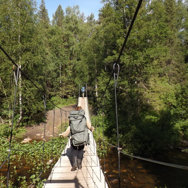 Рано утром следующего дня все собрались у домика сторожа. Было нас всего-то 9 человек, а впереди 9 км пути с рюкзаками на приют, где нам и полагалось базироваться потом еще 7 дней. Никогда не считала себя физически слабой, но тут плелась последней. Не подумайте, что я уже старушка – с песочком погремушки! Нет, я еще ого-го, но на этом маршруте к стыду своему, все же шла последней, сдыхая на ходу. Ну и как не сдыхать-то? За спиной рюкзак 16 кг, дорога – крупный курумник и тропа уходит все вверх и вверх.