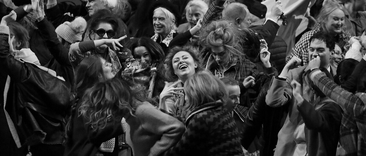 Но весь фокус в том, что на сцене Баварской оперы построено не киевское метро, а Колонный зал Дома Союзов из самого центра Москвы. Он, царственно поблескивающий идеально воспроизведенными колоннами, люстрами и капителями, и есть главный герой спектакля. Он, постоянно заполненный многочисленными героями этой, одной из самых густонаселенных опер, останется с нами до самого конца, никуда от него не деться. Только со временем его хрустальные люстры затянут черной тканью, а из матрасов сложат погребальное ложе.