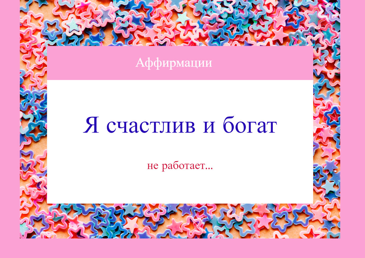 Когда-то и я активно практиковала аффирмации. Результат был нулевой. Без конкретных действий для получения позитивного желаемого опыта ничего не получалось.