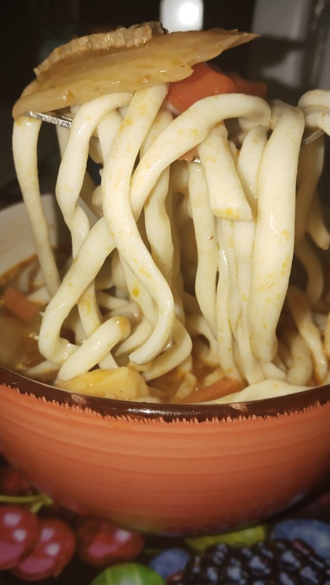 Лагман блюдо центральной Азии, по сути это густой наваристый бульон с домашней лапшой с мясом и овощами. Существуют разновидности данного блюда, но мы верны двум. Уйгурский лагман - кстати наверное самый популярный, часто покупаем его и делаем сами, это когда лапша подается отдельно от бульона с овощами и мясом. Узбекский лагман - более жирный и лапша смешивается вместе с мясом и бульоном в одном казане. Согласно легенде лагман появился когда три путника шли разными дорогами но у каждого из них были разные продукты, у первого - вода и травы, у второго - мясо, у третьего - овощи и вода. Вот так и появился ЛАГМАН. Вот один из многих рецептов как готовим и мы. Состав / Ингредиенты: Говядина 300 Грамм (мякоть) (можно взять для себя любое другое мясо). Лапша Репчатый лук 2 Штуки Баклажан 1 шт. Морковь 1 Штука Болгарский перец 2 Штуки Стручки чеснока 5-6 Штук Чеснок 2 Зубчика Соль По вкусу Чёрный молотый перец По вкусу Растительное масло
