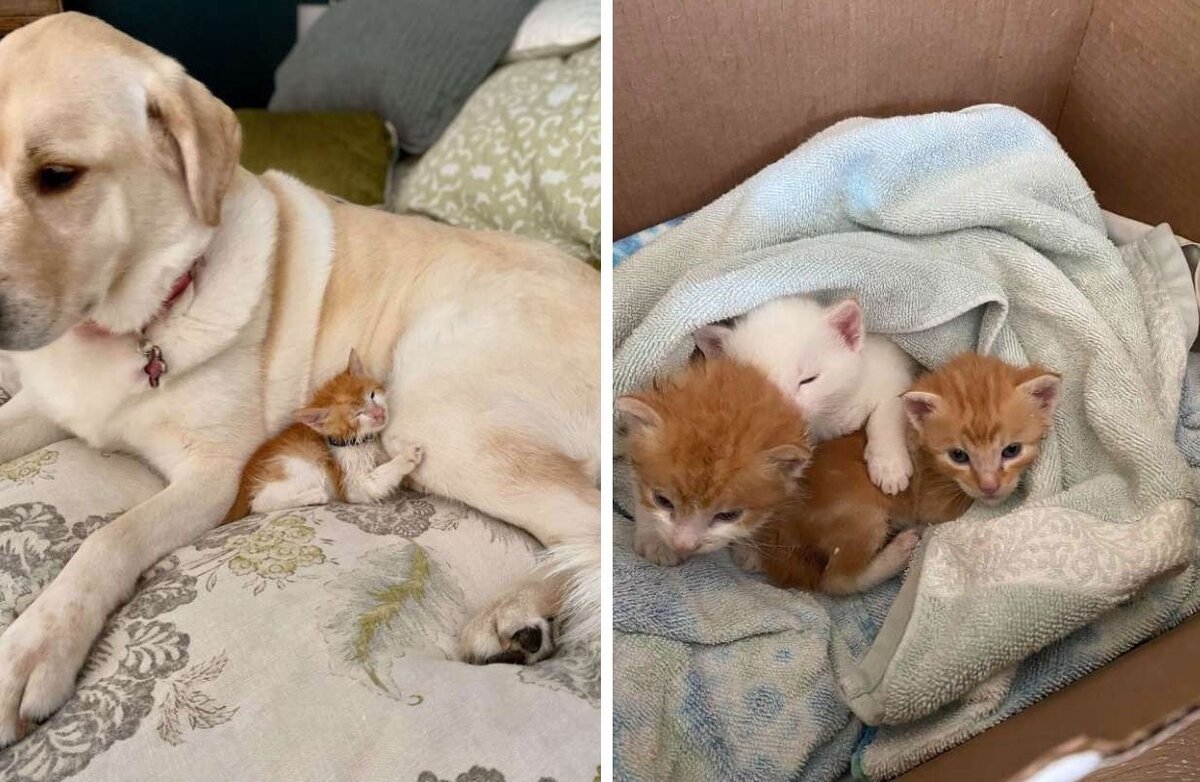 Брошенные котята нашли любящую мать в лице заботливой собаки