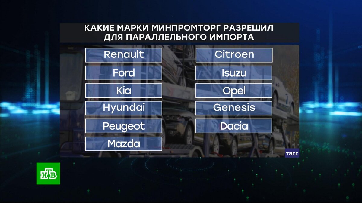 [ Смотреть видео на сайте НТВ ] Ранее Минпромторг также добавил в список продукцию IKEA, Nintendo, Hasbro, Yves Saint Laurent и еще ряда компаний. Минпромторг включил в список параллельного импорта автомобили 12 иностранных марок: Renault, Ford, Kia, Mazda, Hyundai, Genesis, Dacia, Citroen, Mazda, Opel, Peugeot, Isuzu, документ направлен на утверждение в Минюст РФ, сообщил РИА Новости источник в отрасли. В ассоциации «Российские автомобильные дилеры» агентству в свою очередь рассказали, что выходили с предложением расширить перечень параллельного импорта на эти автобренды. «Это решение будет способствовать сокращению дефицита в масс-сегменте на российском автомобильном рынке», — подчеркнули в ассоциации. С мая прошлого года в перечне уже находятся Land Rover, Jeep, Jaguar, Chrysler, Bentley, General Motors, Cadillac, Chevrolet, Dodge, Mitsubishi, Tesla, Linkoln, Hummer, Rover, Mercedes-benz, Daimler, Maybach, BMW, MINI, Volkswagen, Skoda, Audi, Porsche, Toyota, Lexus, Lamborghini, Ferr