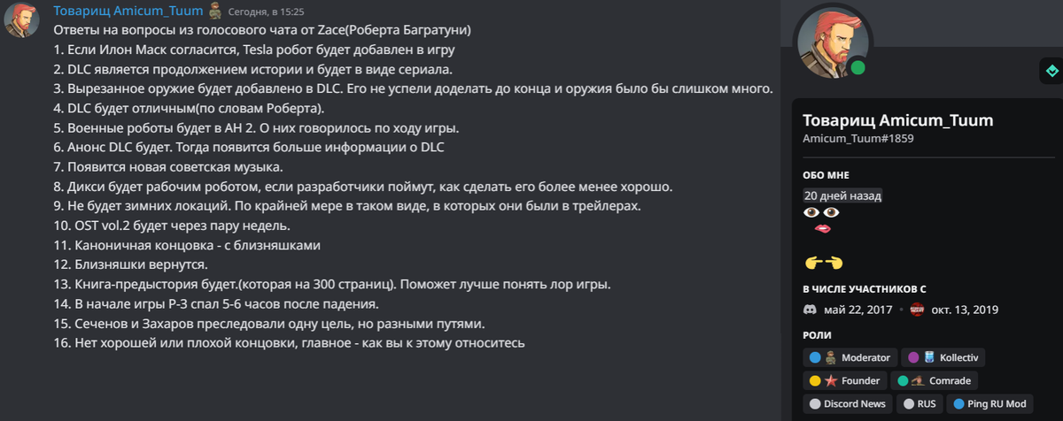 Пользователь Amicum_Tuum опубликовал подборку ответов главы Mundfish Роберта Багратуни относительно будущего Atomic Heart. Он затронул темы коллаборации с Илоном Маском и дополнений. Дополнения должны продолжить историю основной игры и будут выходить в виде «сериала». В DLC точно стоит ожидать возвращения близняшек и оружие, которое вырезали из базовой игры. Другие детали Ранее блогер Алексей Макаренков заявил, что Mundfish уже планирует разработку Atomic Heart 2. Однако сперва студия намерена выпустить четыре DLC. Заглавное фото: cramgaming