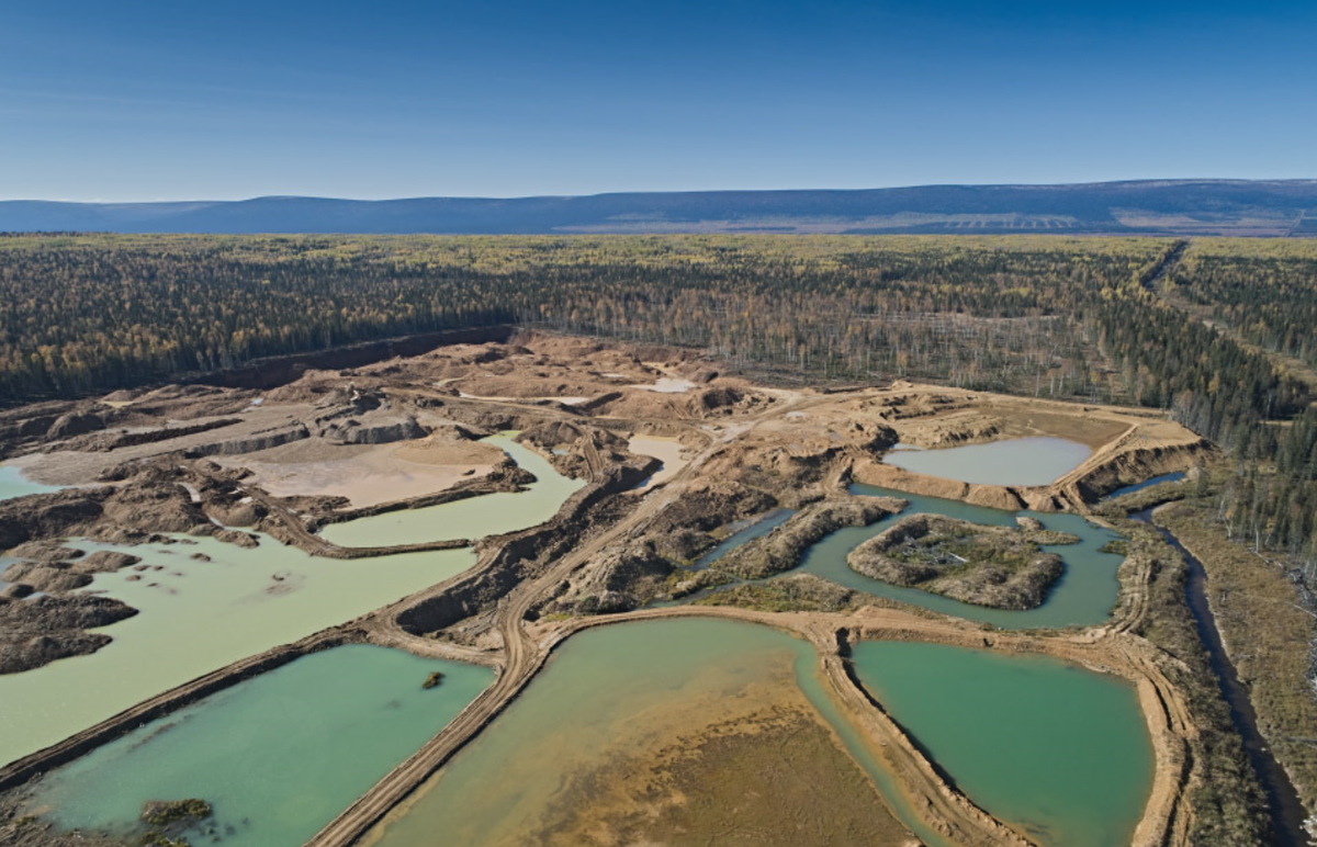 Вот так выглядит вполне типичный ландшафт. Брошенные карьеры постепенно затапливаются талым снегом, дождевой водой и подземными течениями. Цвет воды напрямую зависит от того, что здесь добывали. Впрочем, иногда комбинации производств создают ещё более причудливую палитру, так что точно никогда не угадать.