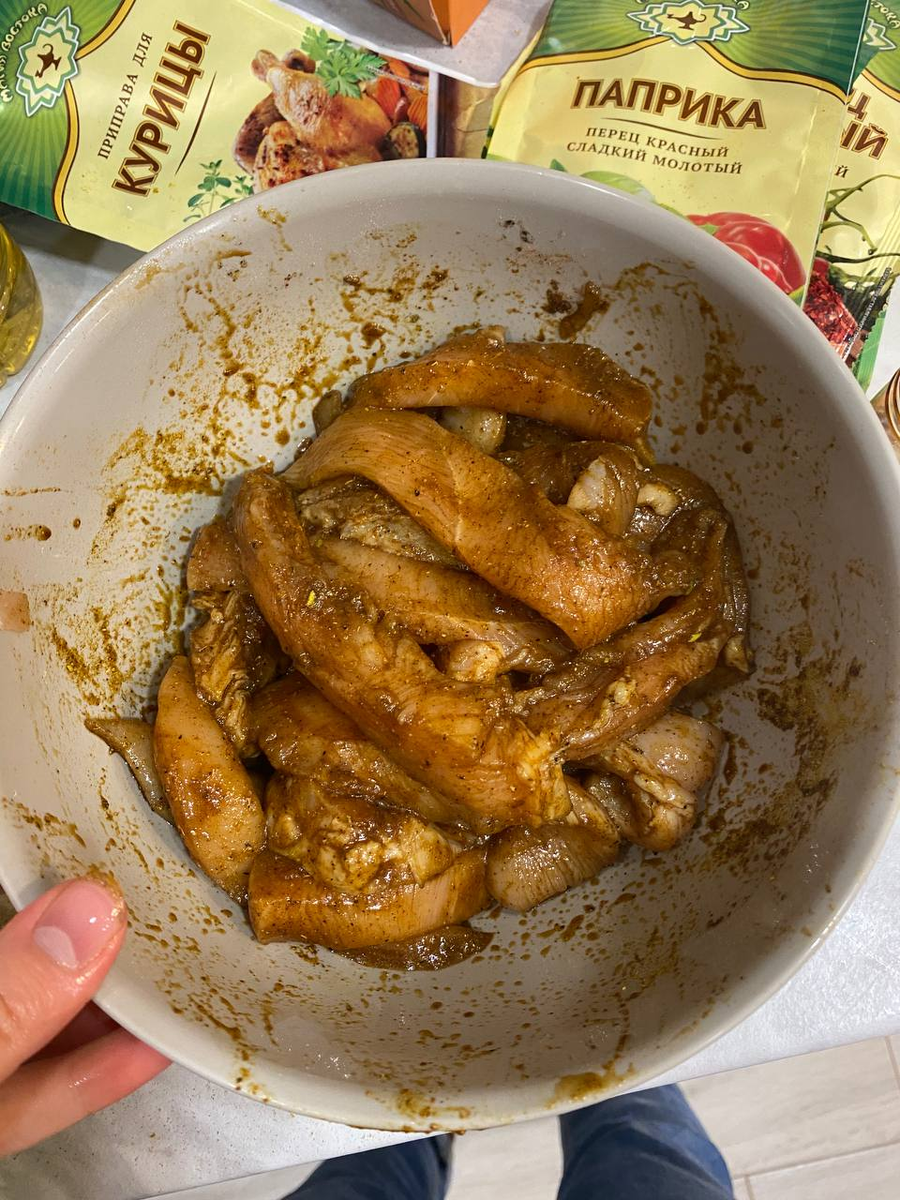 Начну с того, что я не сразу верила в это блюдо, так как боялась, что курица будет резиновая. НО ЕМАЕ! Это вышло просто восхитительно, поэтому делюсь:) Для стрипсов нам понадобятся: Куриную грудку режем на пластики. Затем в глубокой тарелке смешиваем пластики с приправами и соевым соусом. Забываем про это на минут 10, чтобы курица хотя бы немного пропиталась маринадом. Готовим все для панировки. Высыпаем муку, куда Вам удобно. У меня это была тарелка. Высыпаем сухари для панировки, тоже куда Вам удобно. Далее отделяем желток от белка и сливаем его в глубокую тарелку. Мешаем. Оставляем. Сковороду ставим на самый высокий огонь. Пока она греется, берем пластик, купаем его в муке, затем в желтке и в сухарях. После этого кидаем обработанные пластики на сковороду и жарим по 3-5 минут с каждой стороны. После выкладываем готовые стрипсы на тарелку. И все! Готово! Панировка аж отходит от мяса, а само мясо вышло мягким и вкусным. Приятного аппетита!