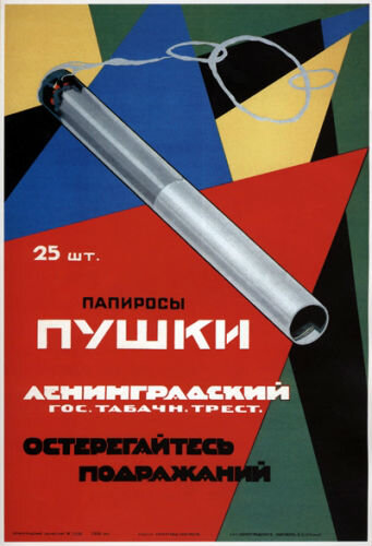 В 1922 году Александр Николаевич Зеленский был назначен главным художником Петроградского (позже Ленинградского) табачного треста. И тут реклама и оформление табачных изделий становятся его служебной обязанностью. В его работах уже не чувствуется авангард, его плакаты, рекламирующие папиросы «Пушки» (1926 год) и «Сафо» (1929 год), сейчас признаны примером разновидности авангарда: конструктивизма. Оба они были представлены на выставке «Плакат русского конструктивизма 1920-х – 1930-х гг.», проходившей летом 2010 года во Франции. Следует отметить, что первый из плакатов сообщает, что контрафакт был и тогда. Год написания плаката- 1926. Сама упаковка от папирос была выполнена в схожей стилистике, но немного отличалась от рекламного плаката. Мы видим, что все также основой является конструктивизм. Но на папиросе отсутствует дым. Фигуры, на заднем плане имеют иную раскраску и расположение. Несколькими годами позже, Ленинградский табачный трест, выпускал "более редкие" синие пачки с аналогичн