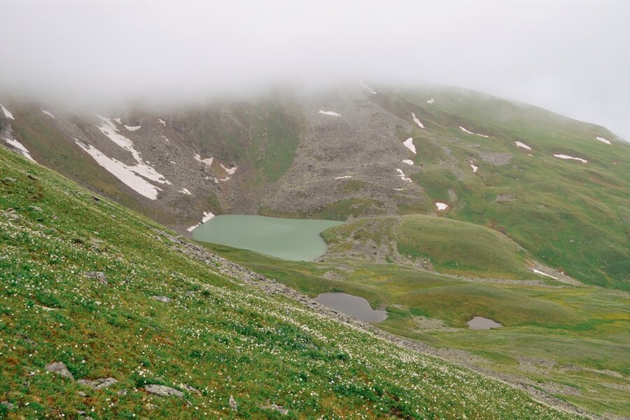 С вершины, чуть раздвинув облака, удалось разглядеть зеленые воды озера Скотта. Озеро Роберта Скотта. Названо в честь первооткрывателя Южного полюса, замерзшего в ходе экспедиции на "Терра Нову". Названо так неспроста, первые исследователи озера, пережили холоднейшую ночь на его берегах. Чудом не по замерзали, и назвали его в честь своего коллеги, экспедиции которого повезло чуть меньше. Среди нас же были смельчаки, которые окунулись в освежающие воды "зеленого озера". Вернулись в лагерь и обнаружили, что его оккупировали местные буренки. Время в горах течет по другим законам, нежели в городе. Спать ложишься, когда садиться солнце. Просыпаешься, когда оно встает, а не звенит будильник. На часах только десять утра, а мы уже сходили на озеро, находящееся в паре километров от лагеря, через почти трех тысячный перевал, вернулись,