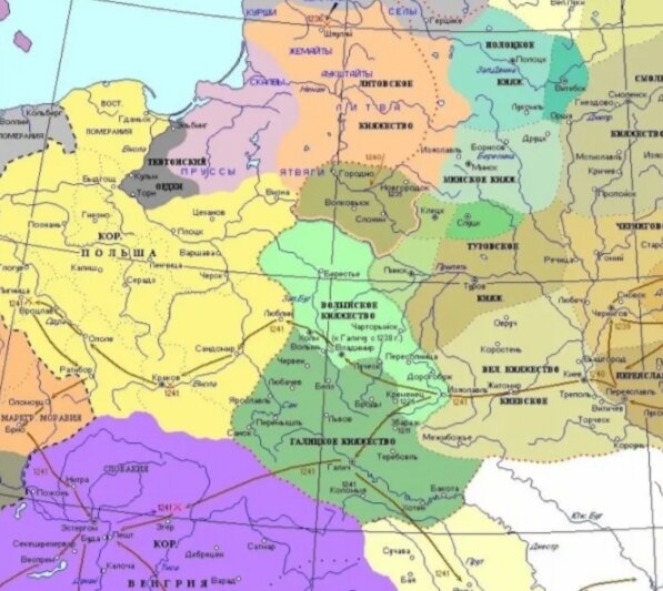 Образование Галицко-Волынского княжества. Юго-Западная Русь обособилась от Киева уже в начале XII века. Здесь образовалось два княжества: В конце ХII века волынский князь Роман Мстиславич захватил Галич и объединил оба княжества под своей властью. Границы Галицко-Волынского княжества простирались по Причерноморью до Дуная, включая земли современной Молдавии и Северной Буковины. На юго-западе границы шли по Карпатским горам и Закарпатью. Феодальные усобицы. Борьба с внешними врагами. Князь Роман Мстиславич решительно боролся против своевольных бояр. Зарубежные связи княжества протянулись далеко за его проделы: в Польшу, Венгрию, Византию, Австрию. Во время одного из военных походов погиб Роман Мстиславич. Власть оказалась в руках удельных князей и бояр. Феодальные усобицы с новой силой охватили Юго-Западную Русь. В борьбе за власть бояре не раз опирались на помощь иноземных войск. Трудным положением Галицко-Волынского княжества сразу же воспользовались внешние враги. Опираясь