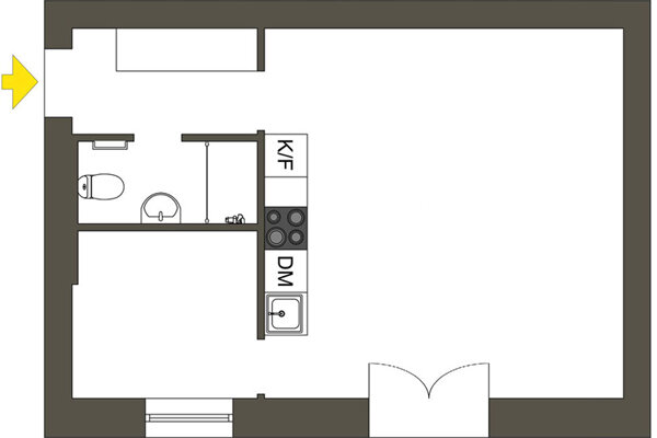Лакончиный и самобытный интерьер квартиры на 38м² с отдельной спальней.