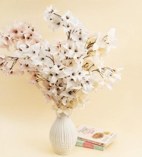 Новые весенние веточки будут замечательно смотреться в вазах. Они очень качественно сделаны. На фото кажется, что ветки одинаковые. Но это не так. У них разные оттенки. Есть чисто белая ветка, а есть кремовая. И третий вариант - нежно -розового цвета. Купила себе такую ветку и покупкой очень довольна. Сразу весеннее настроение появилось в доме.