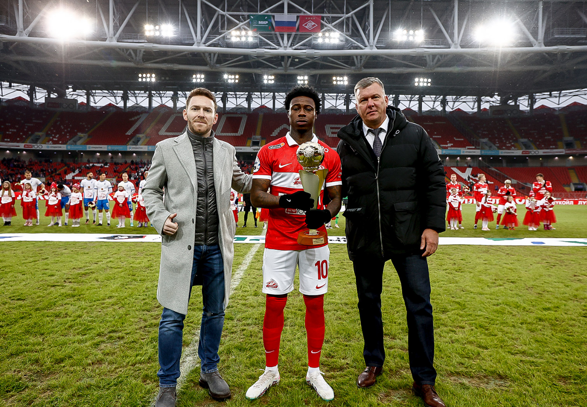 Теперь официально. У голландца перед матчем с «Факелом» было 99 голов, и в субботу он оформил еще дубль. Квинси – второй бомбардир в российской истории красно-белых (больше только у Егора Титова) и второй бомбардир РПЛ среди иностранцев (84 гола – у Вагнера Лава и Сердара Азмуна по 85).