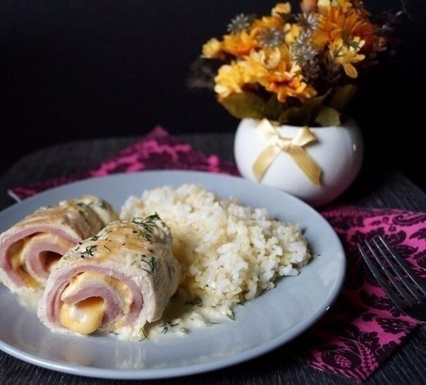 Отличная идея для ужина - куриные рулетики с ветчиной и сыром.