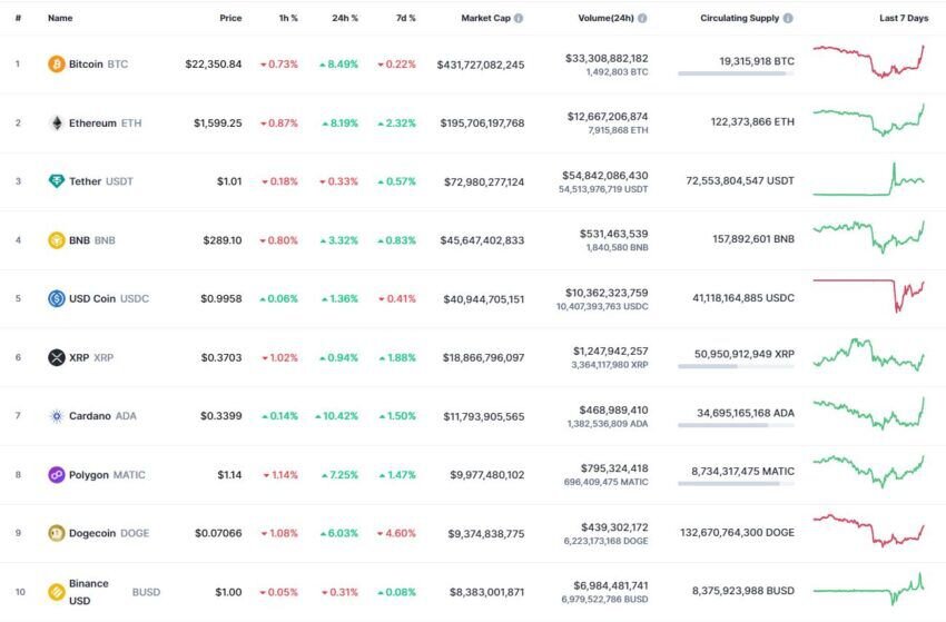 Что происходит на рынке криптовалют Крипторынок начал очередную рабочую неделю ростом. BTC, по состоянию на 07:45 (МСК), торгуется по $22 436. За сутки, по данным ресурса CoinMarketCap, биткоин вырос более чем на 9%. Почему вырос биткоин Биткоин вырос на фоне новостей о запуске в США государственной программы, цель которой — предоставить местным банкам доступ к ликвидности для покрытия обязательств по депозитам. Американская ФРС выделила на помощь поднадзорным организациям $25 млрд. Решение последовало за чередой банкротств в банковском секторе, которая, в том числе, затронула дружественные к криптовалютам банки Signature Bank и Silicon Valley Bank. Участники криптосообщества восприняли новость, как запуск «печатного станка», который может знаменовать возврат американских регуляторов к политике количественного смягчения. Последняя подразумевает печать с последующим вливанием в экономику новых долларов. По мнению криптанов, решение ФРС окажет позитивное влияние на рынок цифровых активо