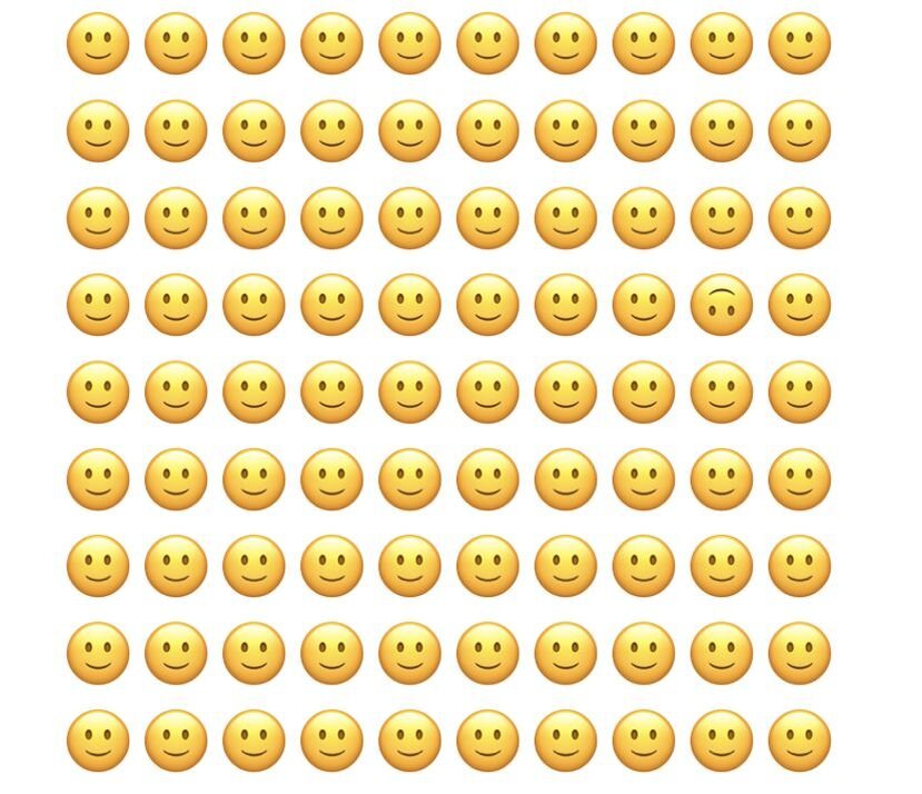 В конце публикации будут добавлены картинки с правильными ответами, чтобы вы могли проверить и убедиться, что отличие действительно было. Тест №1 На картинке изображены улыбающиеся смайлики, однако, среди них есть «белая ворона», смайлик, который чем-то отличается. Найдите его за 30 секунд. Тест №2 Здесь смайлики тоже улыбаются, но один из них имеет другую эмоцию. Найдите его за 30 секунд. Тест № 3 Здесь смайлики очень сильно смеются, возможно, они смеются над тем, кто отличается от них. Найдите его за 30 секунд? Ответы Да, ком