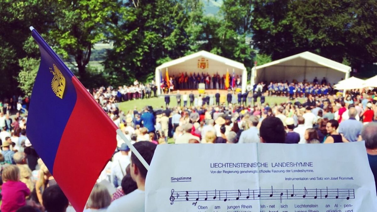 Собравшись в напряжении, они ждут процессии, в которой проходят княжеская семья и самые важные местные политики в окружении оркестра и молодежи в традиционных костюмах. Официальные церемонии начинаются с совместного исполнения государственного гимна «На молодом Рейне», который исполняется на заимствованную у англичан мелодию «Боже, храни королеву/короля» . В ежегодной случайной речи правитель представляет собранные политические и экономические планы, последовательно упоминая уникальную местную систему (то есть обширные полномочия монарха), которая должна гарантировать стабильность страны и богатство ее жителей.