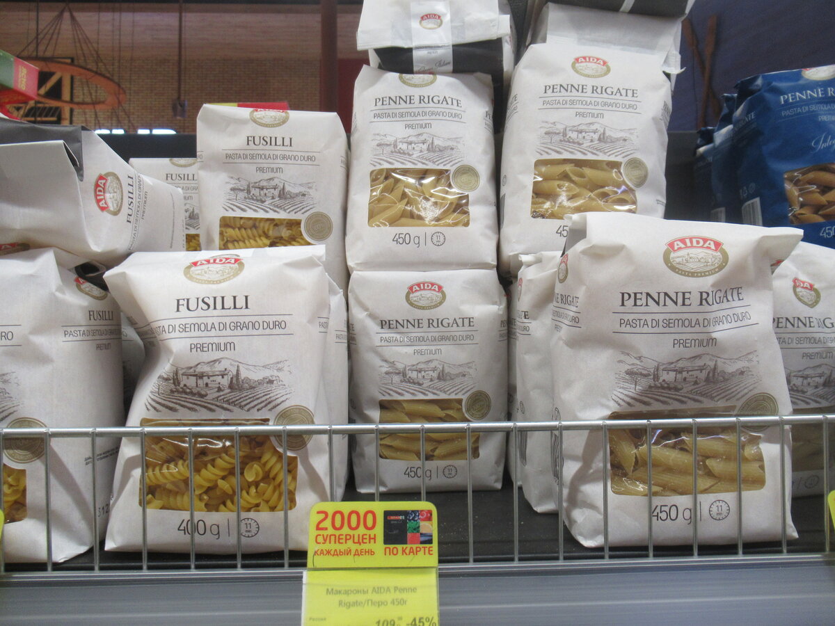 Пока тут законы издают о чистоте русского языка, весьма, кстати, спорные, так как язык элемент живой и естественно он меняется. Полагаю, все века борцы за чистоту языка возмущаются и заимствованиями, и то как разговаривает молодежь, а потом просто все само встает на свои места, многое отходит, а что-то становится нормой и неразрывной частью языка. Не возмущаемся мы в наше время заимствованному слову "трамвай", например. Так вот пока законы издают под видом защиты языка от иностранного влияния, многие отечественные производители ведут себя прямо противоположно, они оформляют свои товары как будто это зарубежные бренды. На днях зашел в одну из тульских сетей. И увидел недавно завезенные макароны. Что мы видим. Ни одного слова на лицевой стороне пачки на родном языке. Прямо Италия. И в первоначальный момент я купился. Подумал было, что в эту сеть поставили макароны из Италии, хотя в последние месяцы я там их не вижу, правда, когда посмотрел на ценник, то стало понятно - отечественные. И