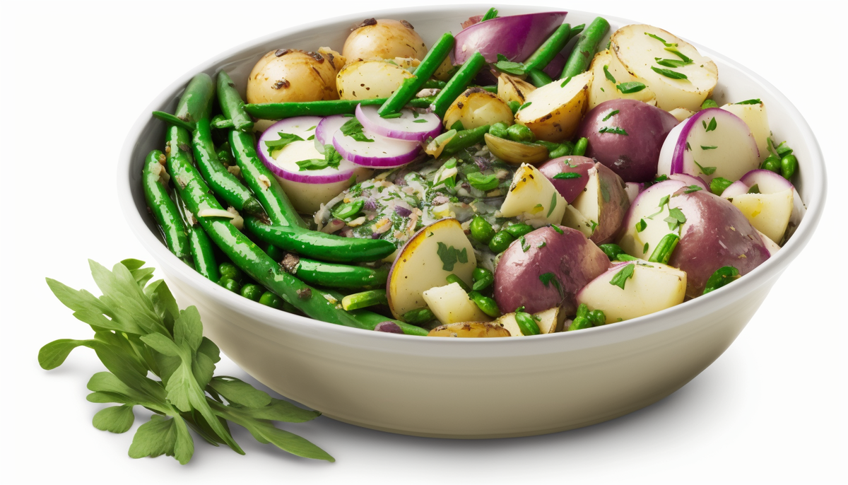 Приготовьтесь побаловать свои вкусовые рецепторы этим дразнящим рецептом пикантного салата, в котором сочетаются хрустящая стручковая фасоль, сытная текстура картофеля, острота красного лука и свежий аромат рубленой петрушки. Этот рецепт - настоящее пиршество для чувств, в нем присутствует дразнящая смесь вкусов, ароматов и текстур, которая заставит вас жаждать добавки. Чтобы создать этот шедевр, начните с выбора самых свежих ингредиентов. Возьмите пучок зеленой фасоли, несколько крахмалистых картофелин, рубиново-красный лук и щедрое количество ароматной петрушки. Затем вымойте и очистите стручковую фасоль, нарежьте картофель кубиками, а лук - тонкими полосками. Теперь настало время приготовить ингредиенты до готовности. Отварите стручковую фасоль, пока она не станет нежной, но еще твердой на вкус. В отдельной кастрюле отварите картофель, пока он не станет мягким. Наконец, обжарьте красный лук до карамелизации и аромата. Когда все ингредиенты приготовлены, пора собирать салат. Соединит